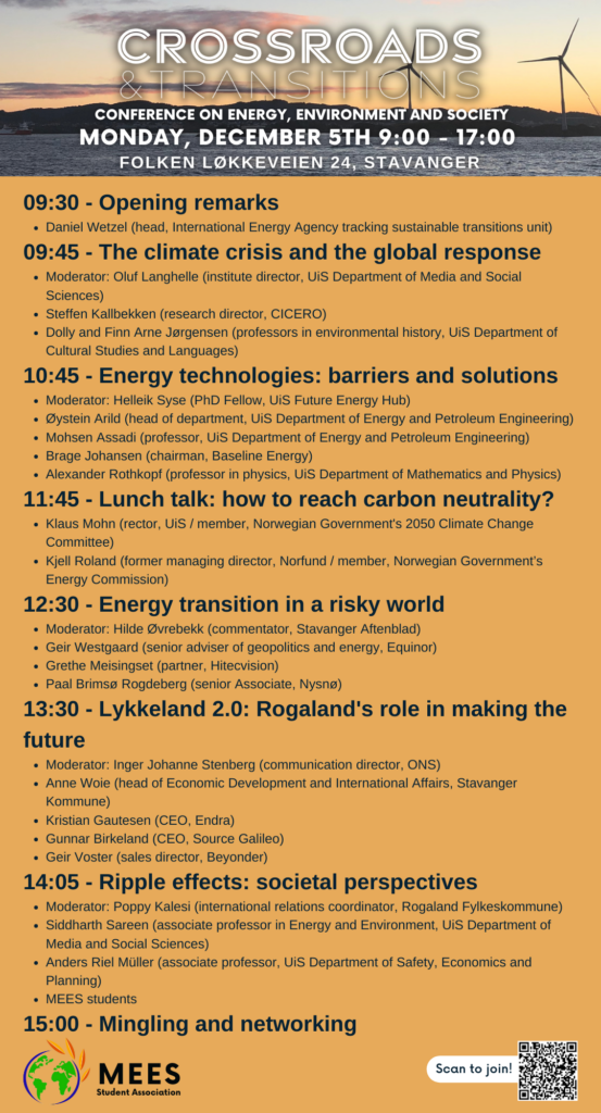 Mandag 5.desember arrangeres energikonferansen “Crossroads & Transitions” i Stavanger.